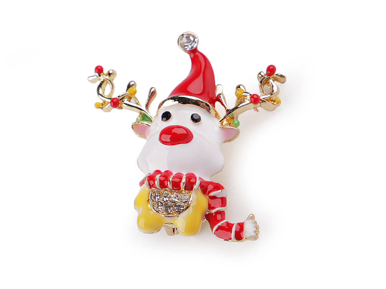 Vánoční brož se sobem s barevným smaltem bude veselým doplňkem vašeho oděvu. Je dozdobená broušenými kamínky, skvěle dozdobí košile, saka, svetry, kabelky i čepice. Brož má vzadu brožový špendlík. Je na plastové kartě, která se dá zavěsit na prodejní stojany. przeczytaj całość