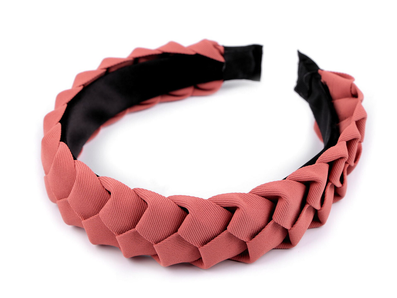 Široká čelenka do vlasů splétaná textilní - 1 ks - 2 korálová světlá