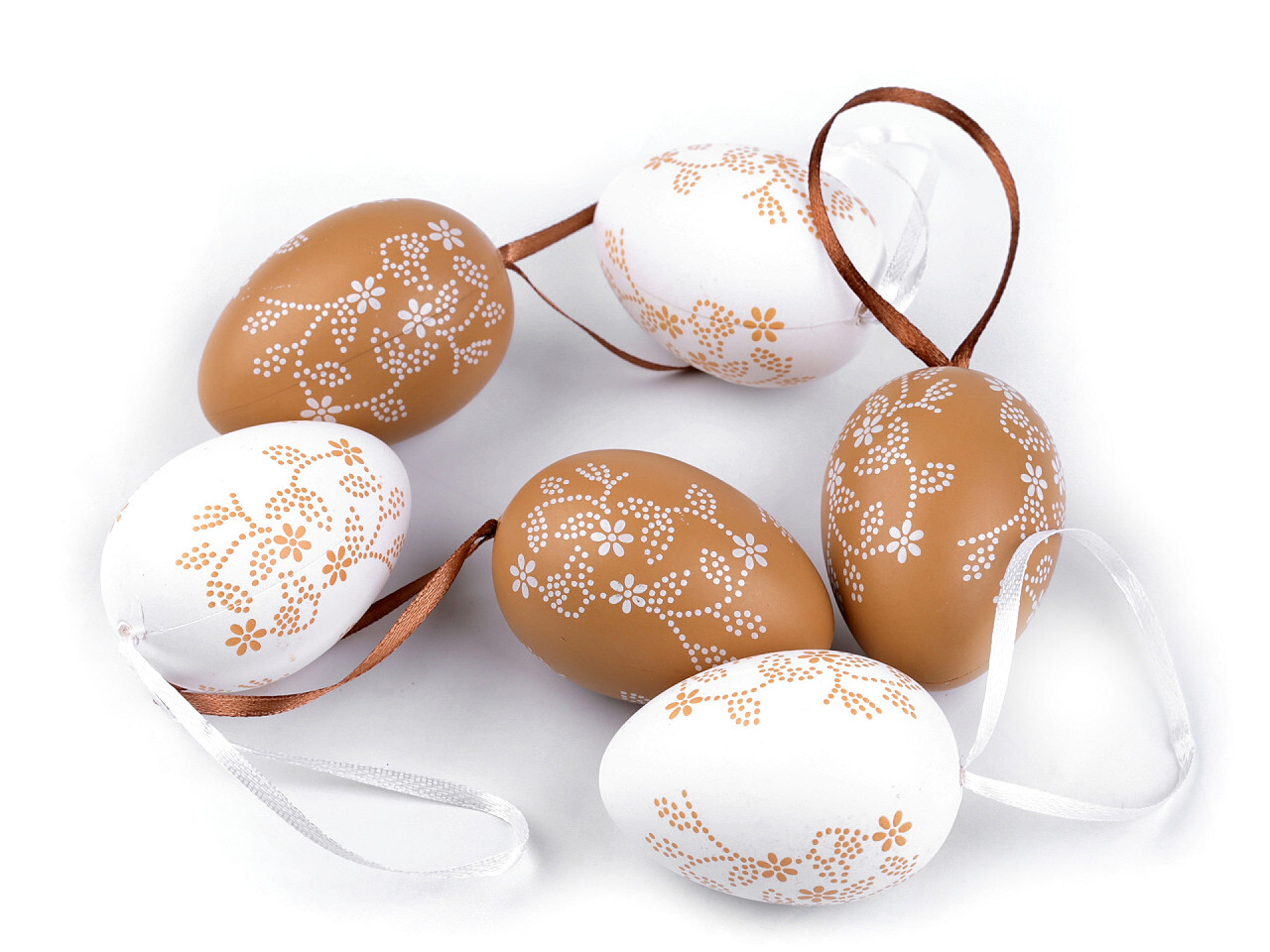 Velikonoční vajíčka k zavěšení - 6 ks - hnědá přírodní bílá