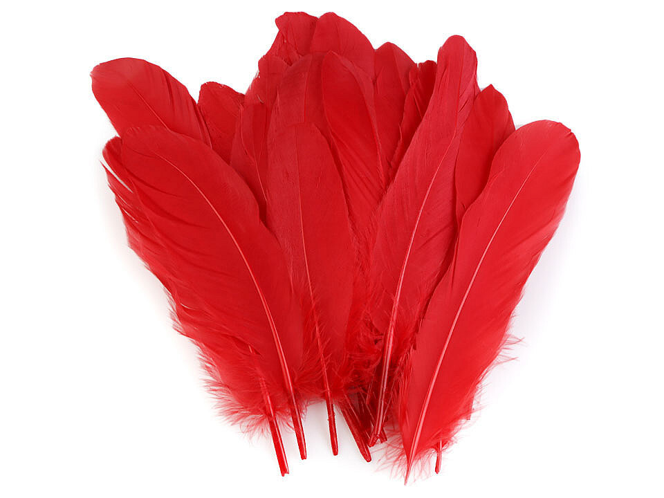 Husí peří délka 12-21 cm - 20 ks - 4 červená tmavá