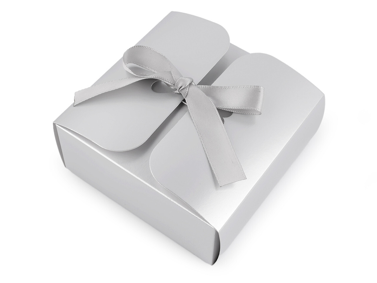 Dárková krabička srdce se stuhou - 12 ks - 1 stříbrná