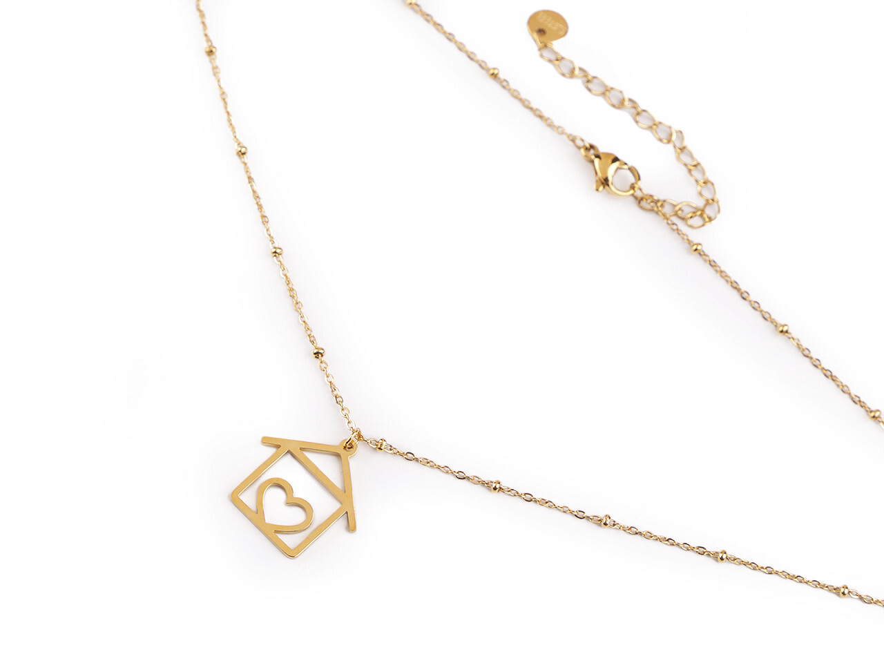 Řetízkový náhrdelník s přívěskem domečku se srdcem je vyrobený z kvalitní nerezové oceli. Přívěsek má vysoký lesk, je zavěšený na kroužku, volně se na řetízku pohybuje. Řetízek je očkový, kombinovaný s drobnými nerezovými korálky. Náhrdelník decentně dozdobí většinu outfitů. Zapíná se na... przeczytaj całość