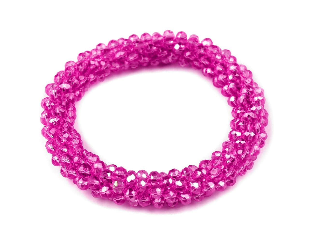 Náramek / gumička z broušených korálků - 1 ks - 19 růžová sytá