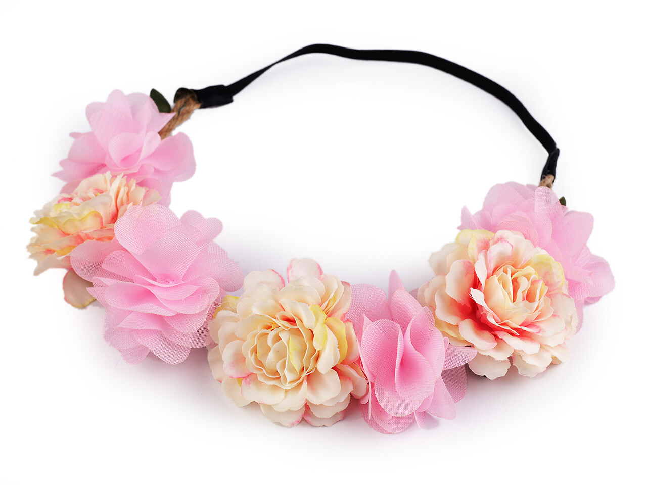 Pružná čelenka do vlasů s květy - 1 ks - 1 růžová