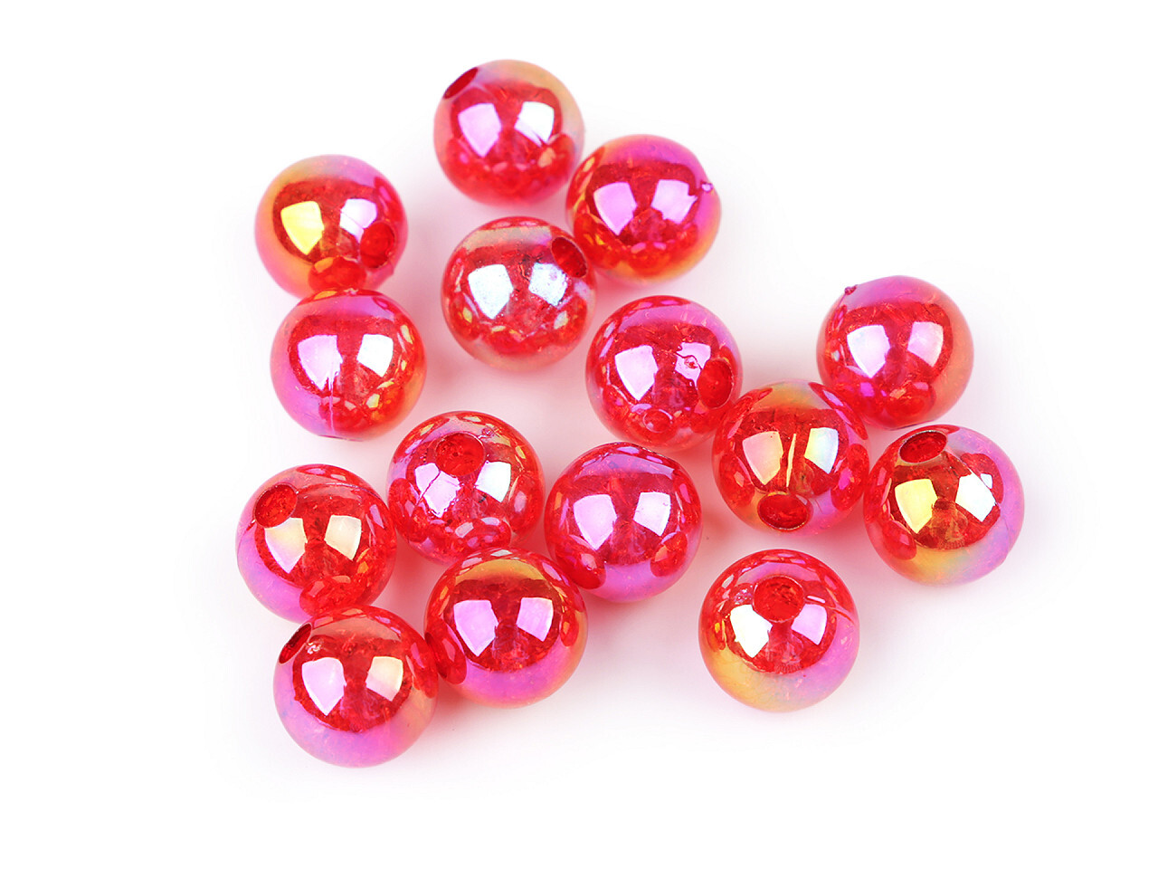 Plastové korálky s AB efektem Ø13 mm - 15 ks - 3 růžová
