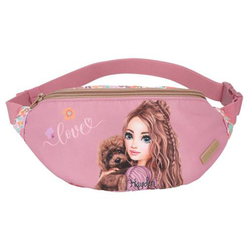 Ledvinka s potiskem Top Model, Růžová s květinovým vzorem, Hayden se štěnátkem