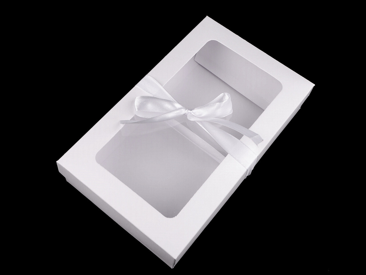 Papírová krabička s průhledem a stuhou - 5 ks - bílá