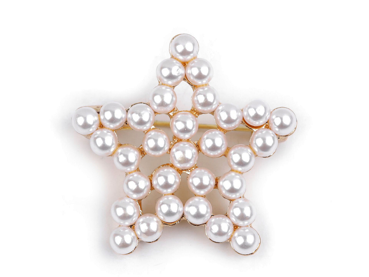 Brož hvězda s perlami - 1 ks - perlová zlatá