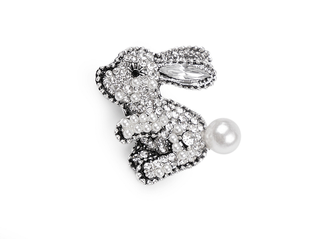 Brož s broušenými kamínky králík, pes - 1 ks - 3 crystal králík
