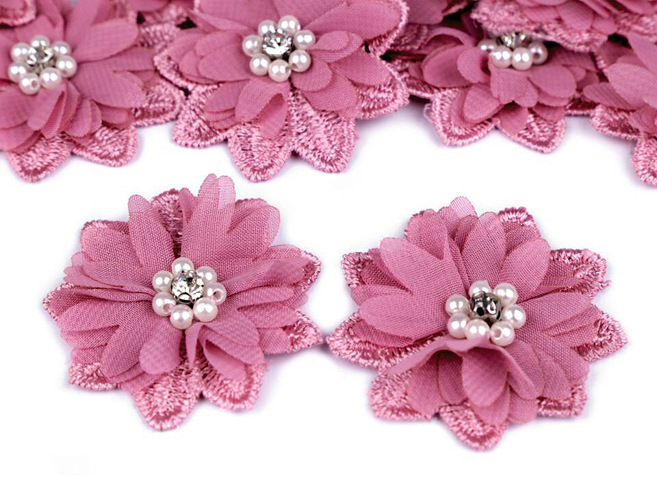 Květ s korálky Ø5 cm - 10 ks - 4 starorůžová