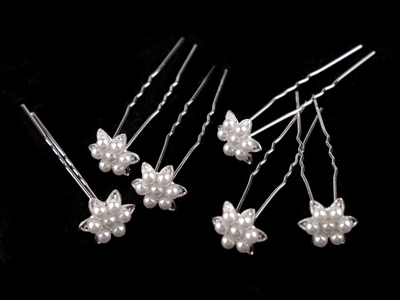Perlová vlásenka květ Ø17 mm - 20 ks - bílá stříbrná