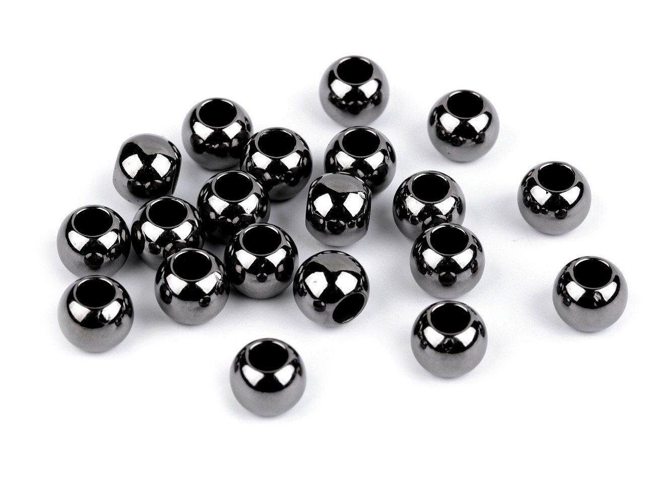Plastové korálky Metalic s velkým průvlekem 8x10 mm - 1200 ks - 4 antracit