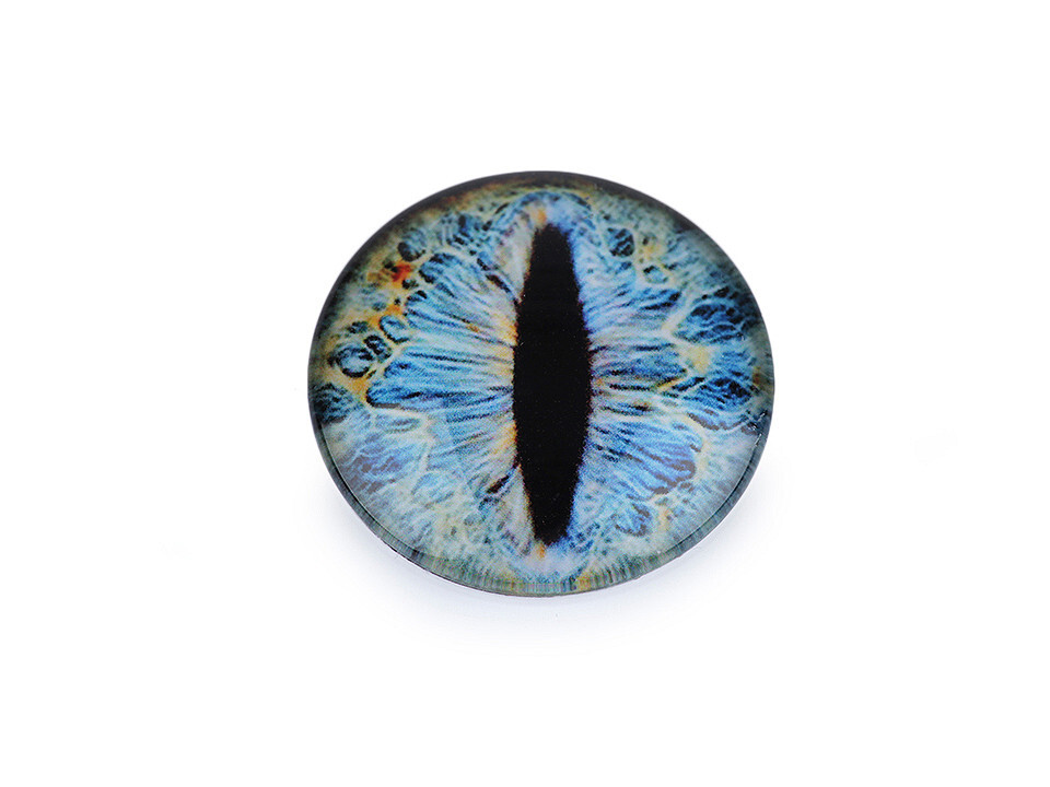 Kuliste szklane oczy z motywem smoczego oka cechują się wysoką jakością wykonania. Dzięki wypukłemu kształtowi soczewki obraz oka pięknie się wyróżnia. Wykorzystasz je do tworzenia różnych postaci i zwierzątek. Do ich przyklejenia warto użyć kleju do przyklejania kryształków. Chętnie stosowane są także przy tworzeniu biżuterii - jako kaboszony nadają się do wklejenia w metalowe oprawy lub do obszycia koralikami i rokajlem. Bardzo efektowne są w biżuterii drucianej.