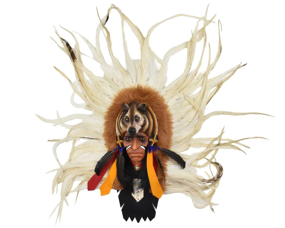 Závěsná dekorace Indiánský náčelník 55 cm - bílé peří - var. E