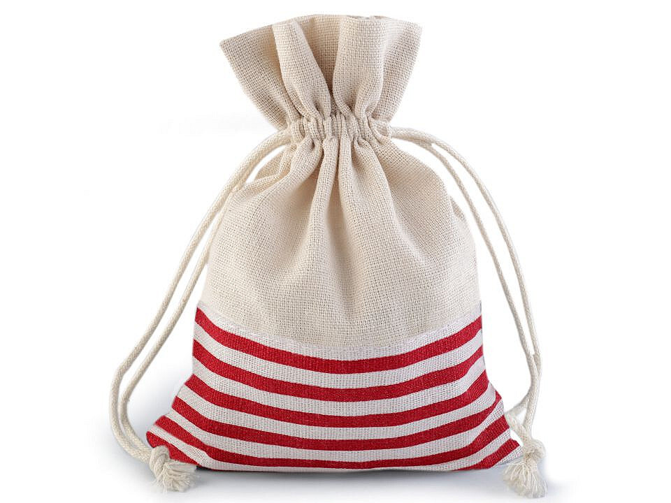 Dárkový pytlík 13x18 cm lněný s proužky - 10 ks - 2 červená jahoda