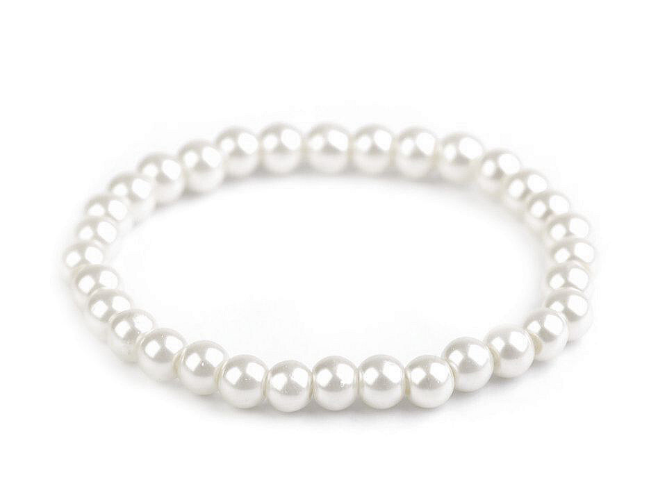 Perły są połączone gumką, dlatego łatwo naciąga się na rękę. Ma uniwersalny rozmiar.
