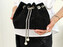 Elegantní stahovací kabelka ozdobená broušenými kamínky se efektně třpytí. Uzavírá se pomocí kovového řetízku s brzdičkou, konce řetízku jsou ozdobené velkými perlami. Navzdory své malé velikosti je kabelka díky rozšířenému dnu velice prostorná, vejde se do ní mobil, peněženka, klíče, kapesníky i...