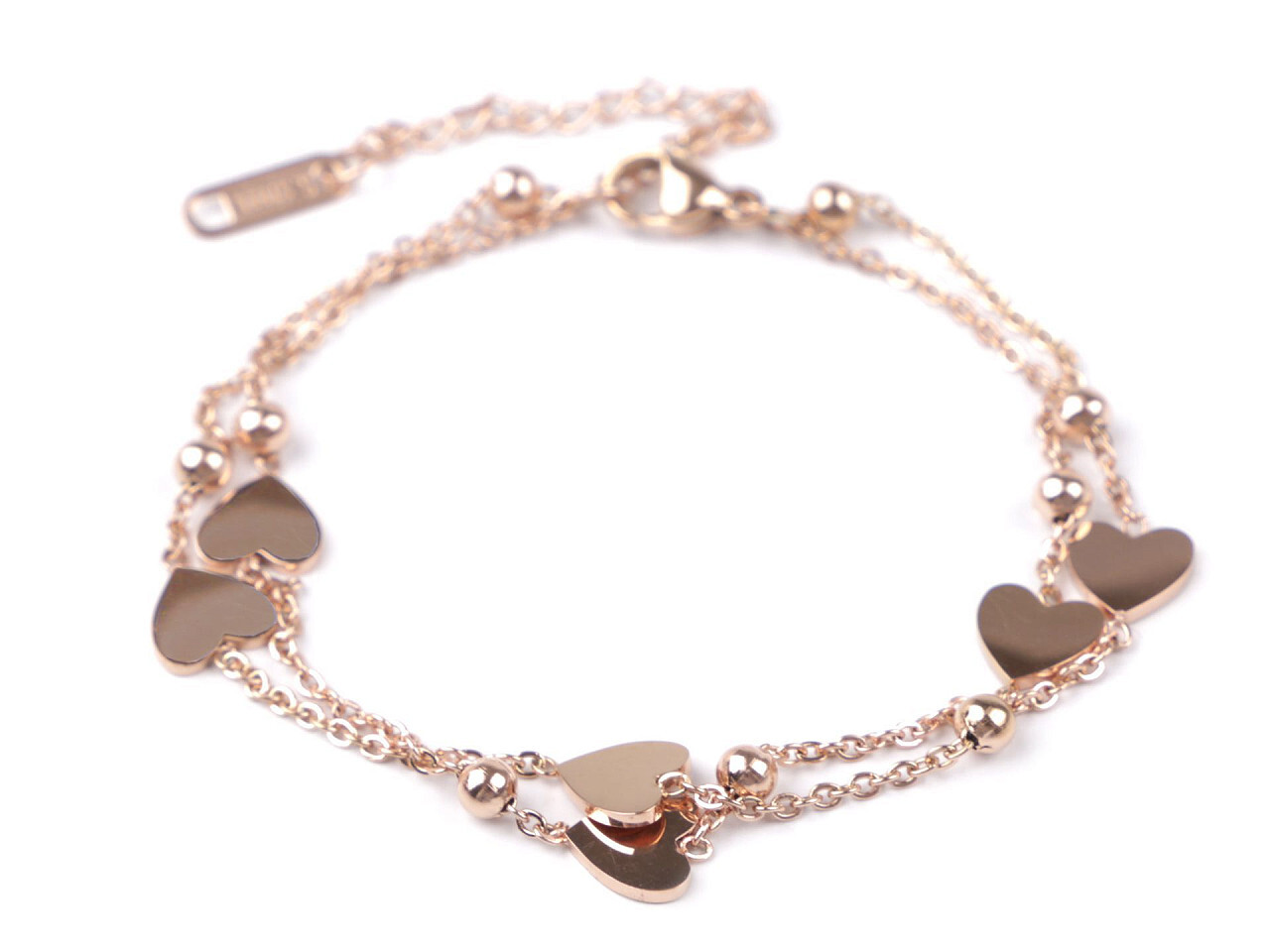 Náramek z nerezové oceli dvojitý, srdce - 1 ks - 2 růžové zlato