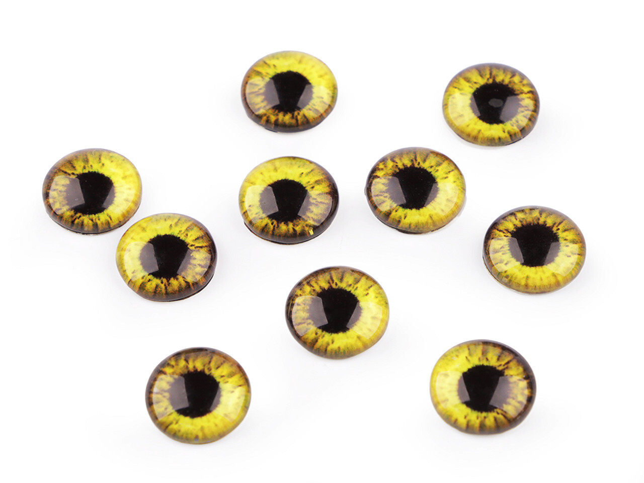 Skleněné oči k nalepení Ø10 a 12 mm - 10 ks - 6 (12 mm) žlutá