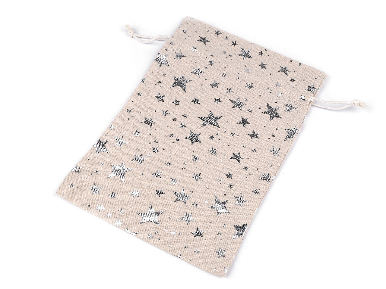 Dárkový pytlík hvězdy metalické 20x30 cm lněný - 1 ks - 1 režná stříbrná