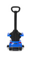 Wbudowana rączka umożliwia rodzicom komfortowe prowadzenie jeździka. Z tyłu oparcia znajduje się przycisk do przełączania trybów jazdy, co umożliwia sterowanie kołami za pomocą kierownicy. Pojazd wyposażony jest w praktyczny schowek, idealny na niezbędne akcesoria. Ten wielofunkcyjny pojazd to doskonały wybór dla rodziców poszukujących bezpiecznej i atrakcyjnej zabawki, która rośnie wraz z dzieckiem.