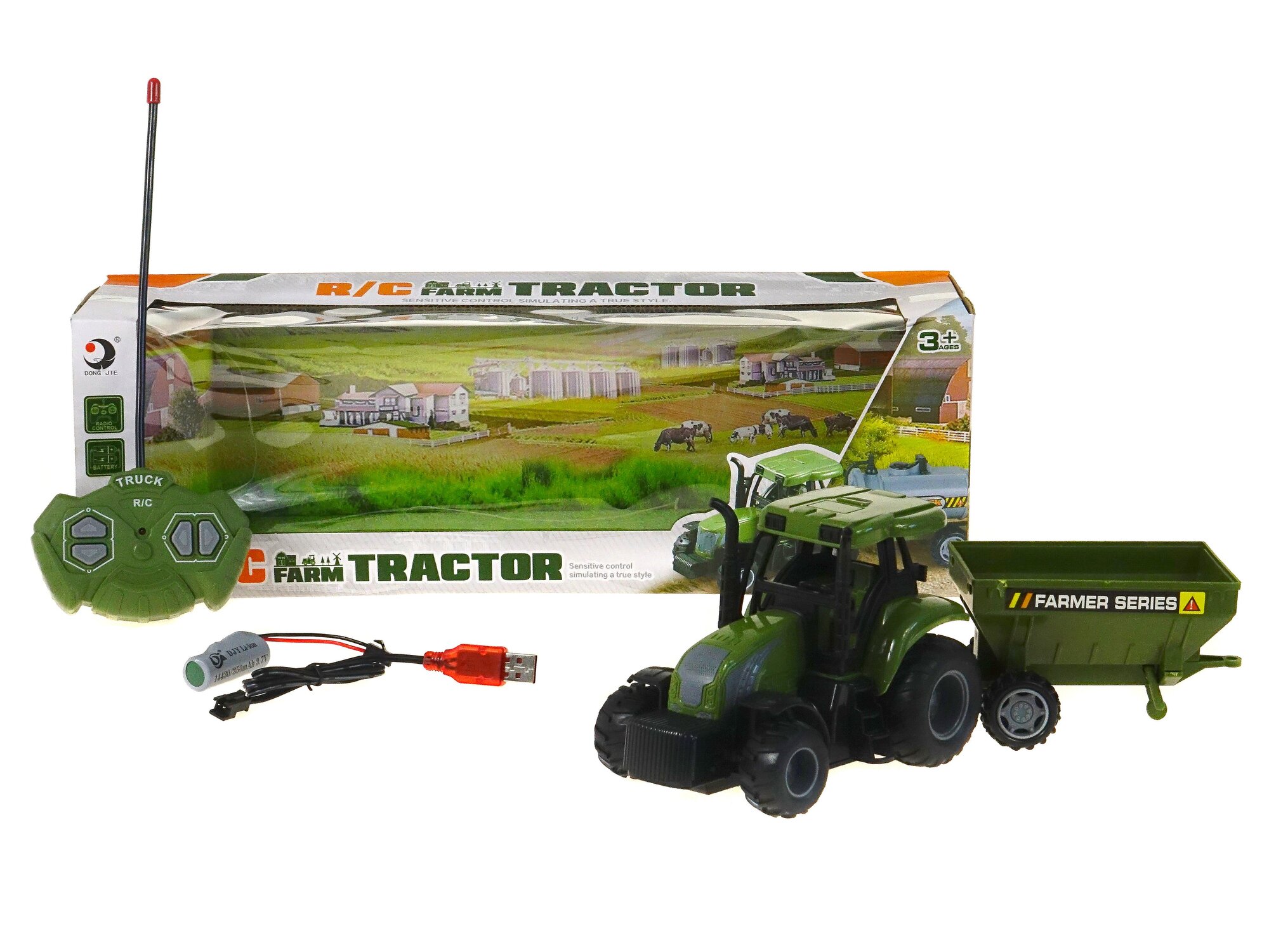 RC traktor, 4 funkce; 29x10x9cm. Baterie 2x AA nejsou součástí balení + kabel USB przeczytaj całość