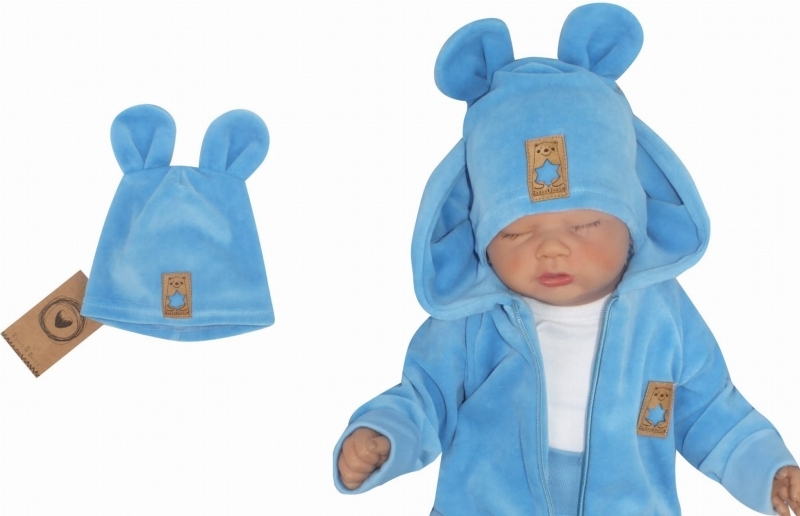 Z&Z Velurová, semišková čepička s oušky, sv. modrá, 68/74; 68/74 (6-9m)