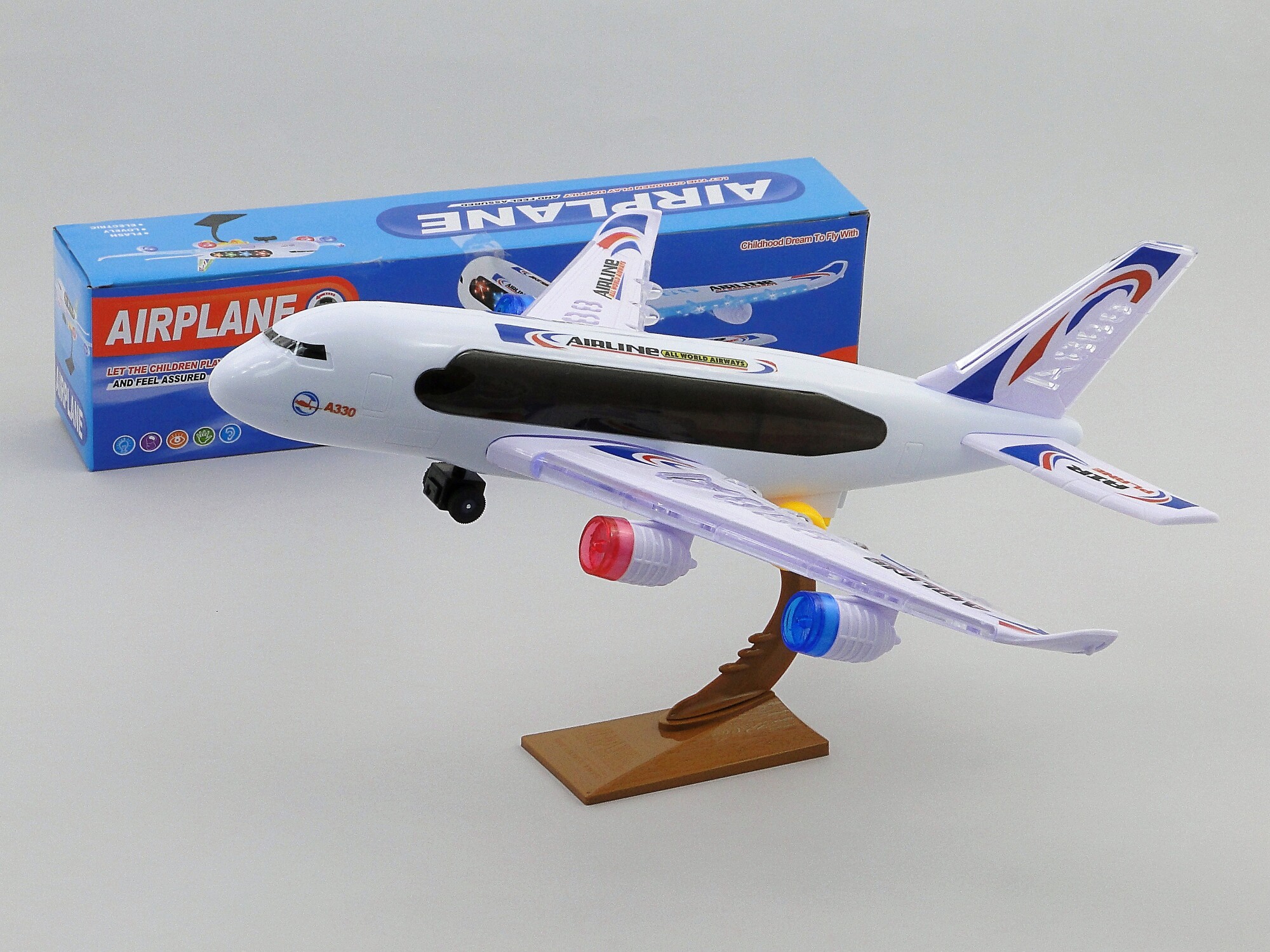 Letadlo na baterie, 3D světlo, hudba; 39 x 42 x 9 cm, 3xAA nejsou součástí przeczytaj całość