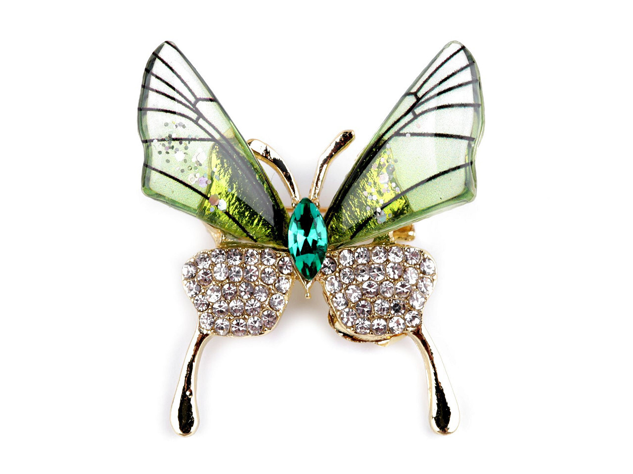Brož s broušenými kamínky vážka, motýl - 1 ks - 6 zelená sv. motýl