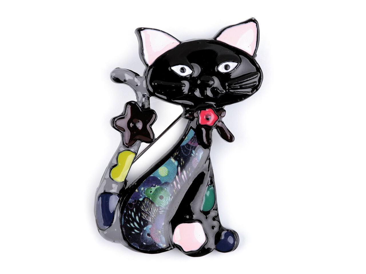 Kovová brož pes, kočka - 1 ks - 6 černá kočka