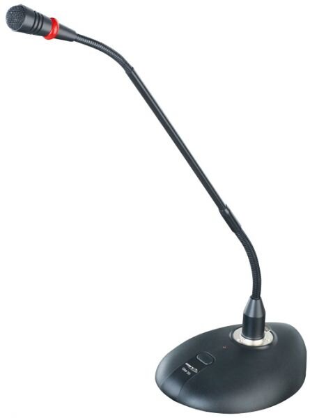 Stolní kondenzátorový mikrofon na 38cm husím krku s podstavcem a vypínačem. Hyperkardioidní charakterisitika. Napájení ze dvou 1,5V baterií nebo 48V fantomové napájení. Konektor XLR. przeczytaj całość