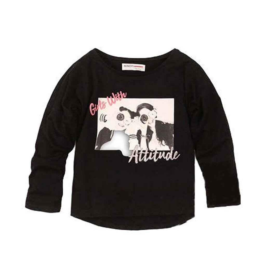 Tričko dívčí s dlouhým rukávem, Minoti, GDIP 8, černá - 98/104