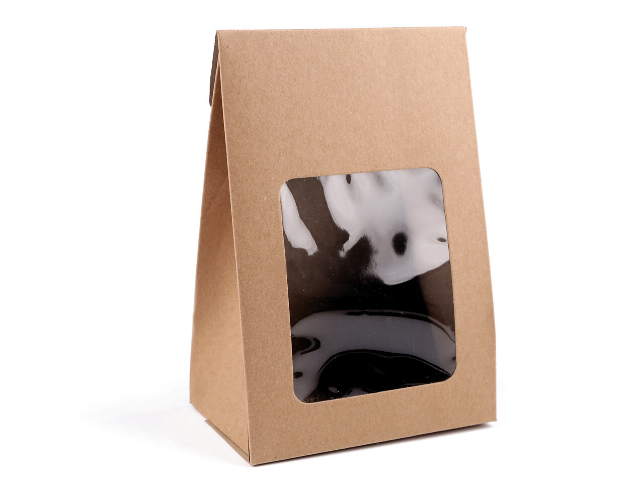 Papírová krabice s průhledem a širším dnem - 10 ks - hnědá přírodní