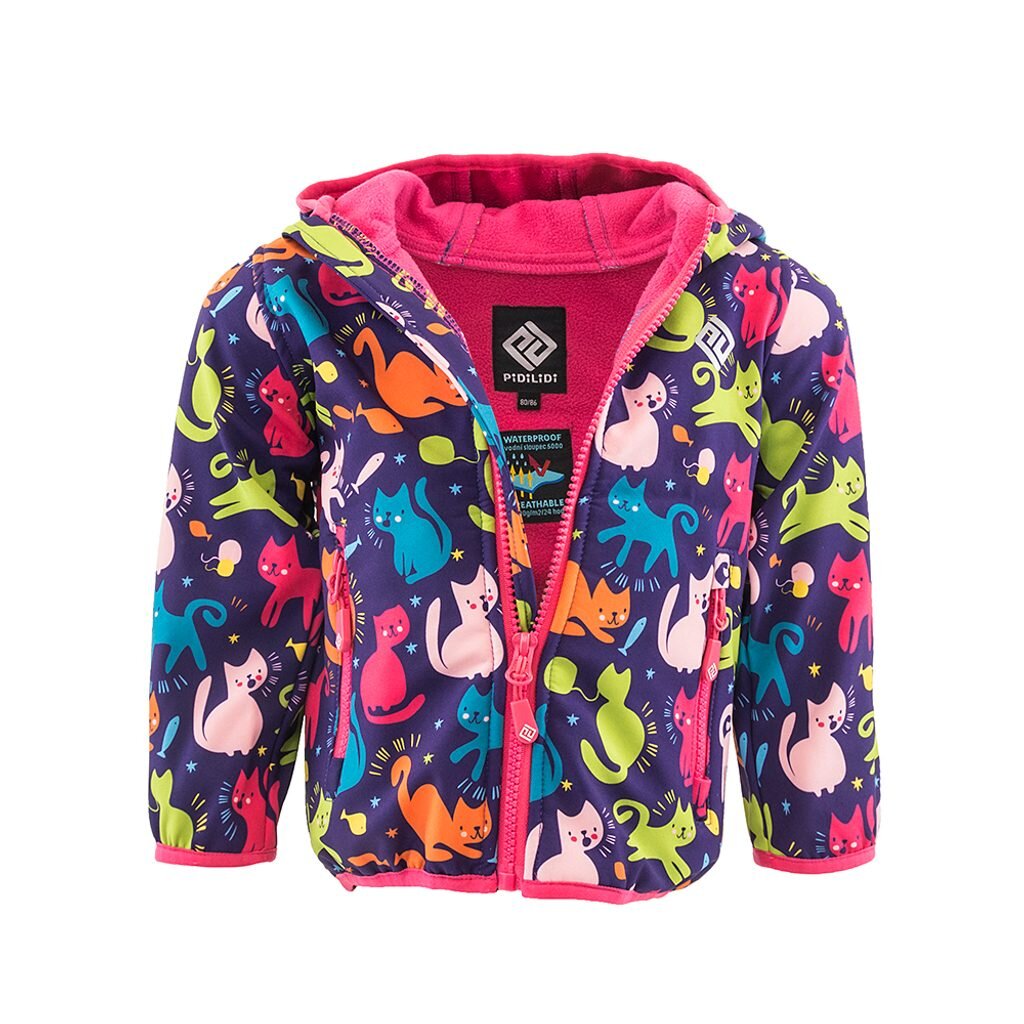 Dětská funkční, vysoce voděodolná softshellová bunda s pevnou kapucí, která zahřeje a nepromokne. Bunda má 2 praktické kapsy vpředu. Rukávy a spodní lem jsou zakončená elastickým lemem. Reflexní potisk na přední i zadní části.