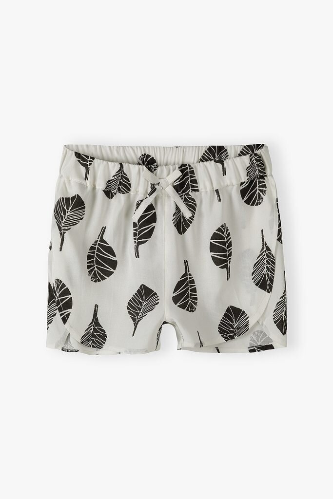 Dívčí kraťasy v pase na gumičku. V bílé barvě s černými listy. przeczytaj całość