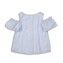 Bavlněná dívčí halenka na ramínka se spadlými volánkovými rukávy. Vzadu zapínání na knoflíky. Barva bílá s celoplošnými modrými proužky. Střih do písmene A. przeczytaj całość