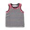Dívčí proužkované tílko v černobílé barvě s růžovými volánky kolem lemu. przeczytaj całość