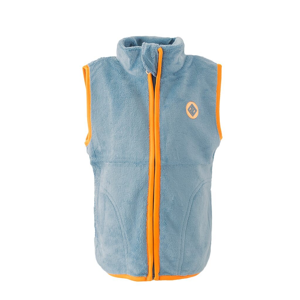 Ta chłopięca kamizelka z oryginalną stójką wykonana jest z wysokiej jakości materiału CORAL fleece, który wyróżnia się miękkością i właściwościami termoizolacyjnymi. Dzięki gramaturze 280 g/m2 zapewnia odpowiednią ochronę przed zimnem, a jednocześnie jest bardzo lekka i przyjemna w noszeniu. Niebieski kolor uzupełniony kontrastowymi lamówkami nadaje kamizelce świeży i nowoczesny wygląd. Praktyczne zapięcie na napy oraz dwie kieszenie gwarantują maksymalny komfort i funkcjonalność na co dzień.