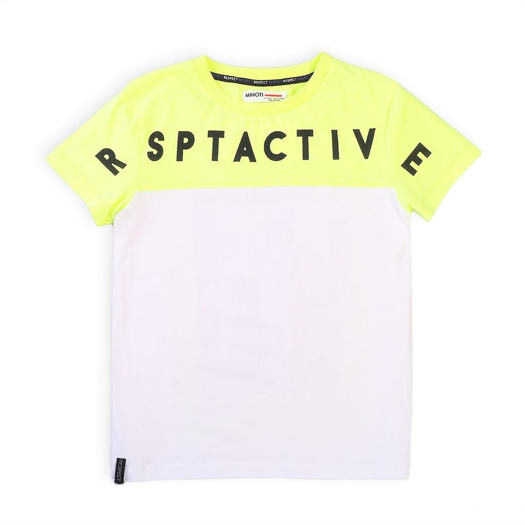 Chlapecké tričko s krátkým rukávem s nápisem. V barevné kombinaci žluto bílé. przeczytaj całość