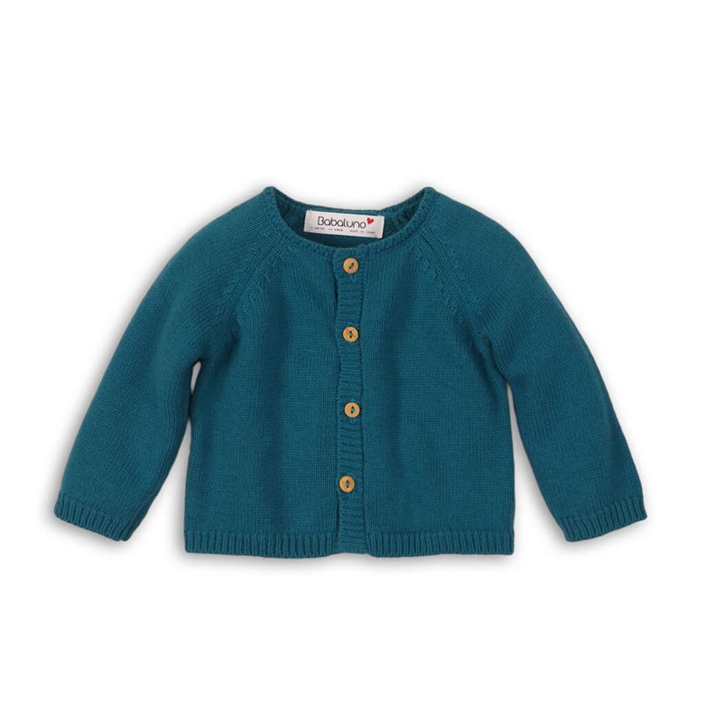 Dziewczęcy sweter na guziki w kolorze niebieskim.