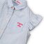 Dívčí proužkovaná košile v pase na zavázání. Košile má límeček a rukávy s volánky.  przeczytaj całość