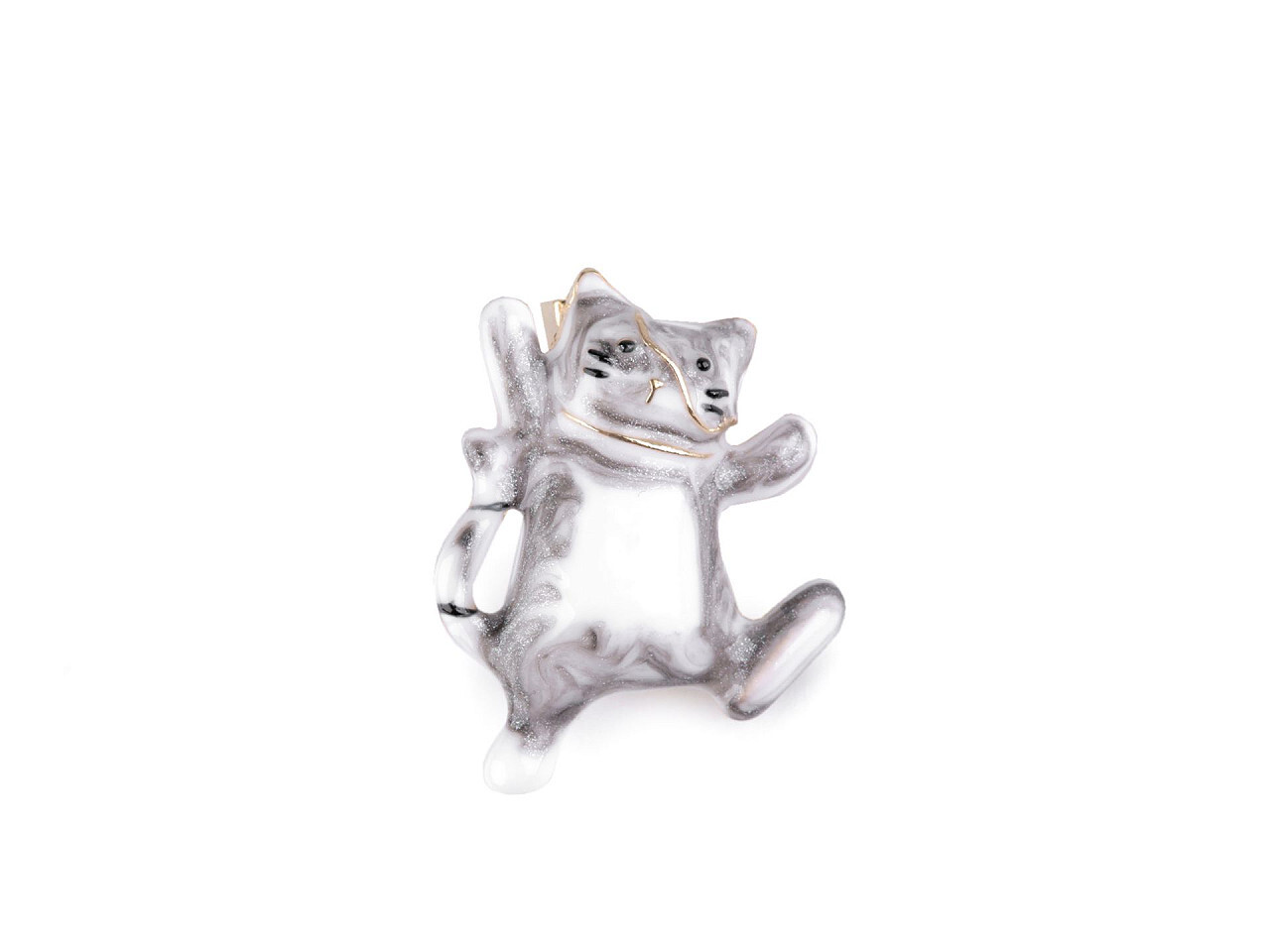 Smaltovaná brož kočky je roztomilým módním doplňkem, který využijete na běžné nošení. Oblíbí si ji i menší slečny. Z rubu má brožový špendlík. Můžete ji nosit nejen na oděvech, hodí se i k ozdobení klobouků, tašky, batohu či sepnutí šátku. Zadní stranu má dutou - odlehčenou.Brož je na plastové... przeczytaj całość