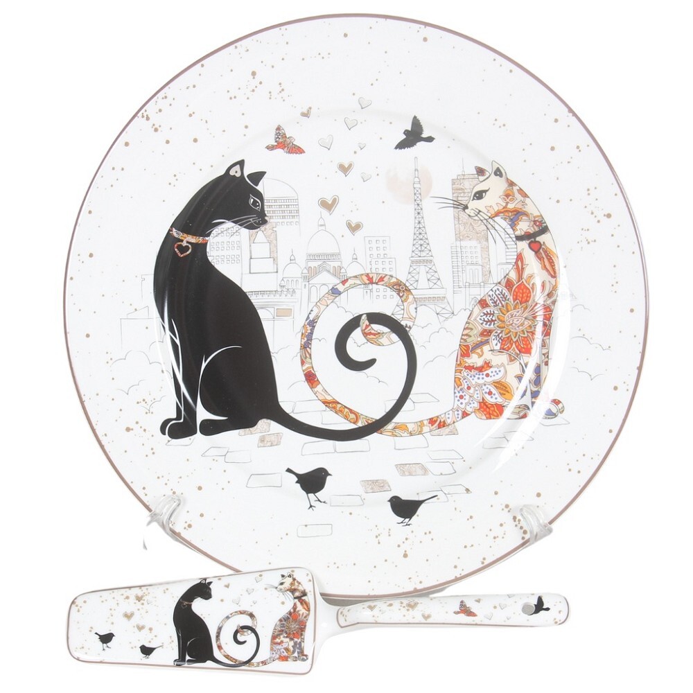 HOME ELEMENTS Talíř kulatý s lžící na dort, Kočky