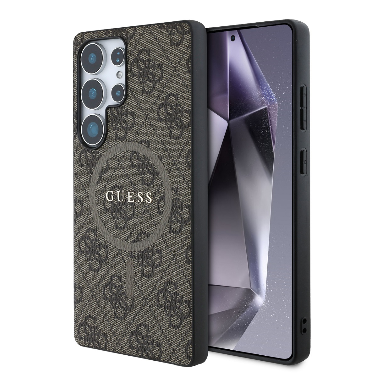 Guess PU Leather 4G Colored Ring MagSafe Zadní Kryt pro Samsung Galaxy S25 Ultra Brown