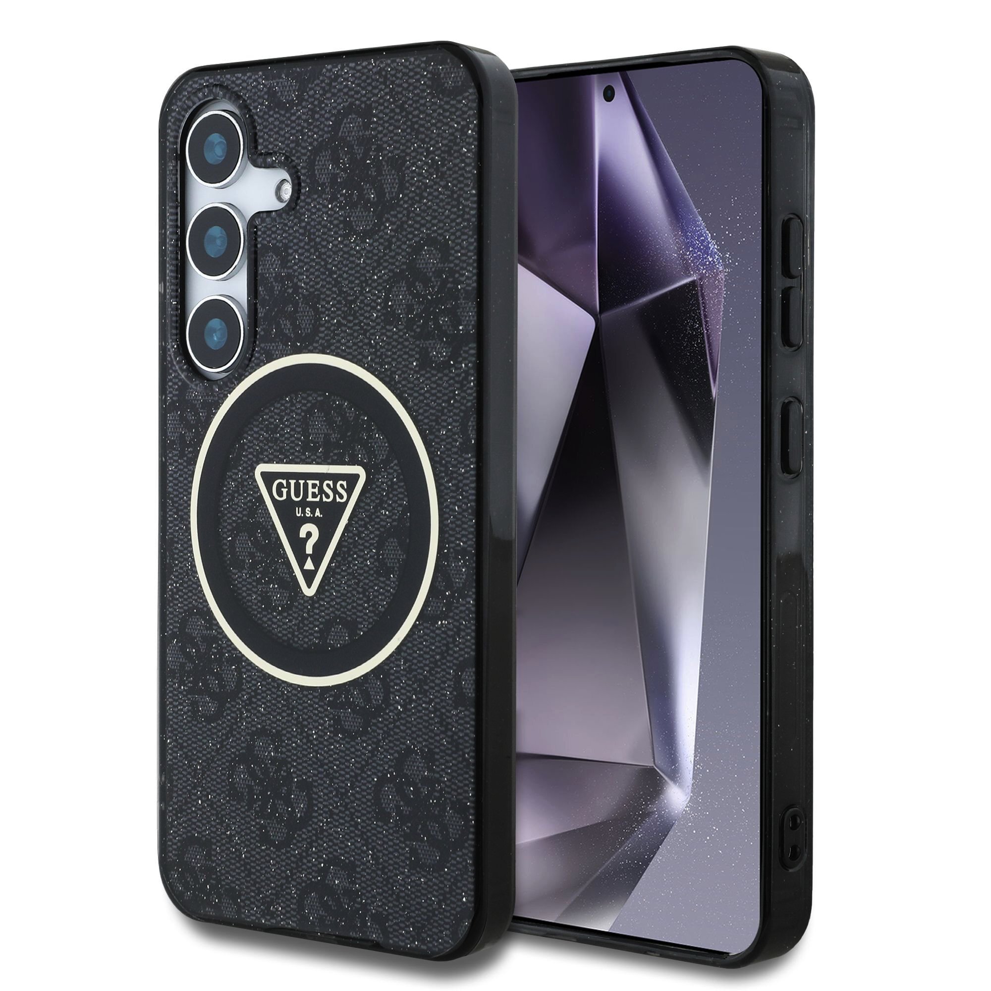 Guess IML 4G Glitter and Triangle Logo MagSafe Zadní Kryt pro Samsung Galaxy S25 Black