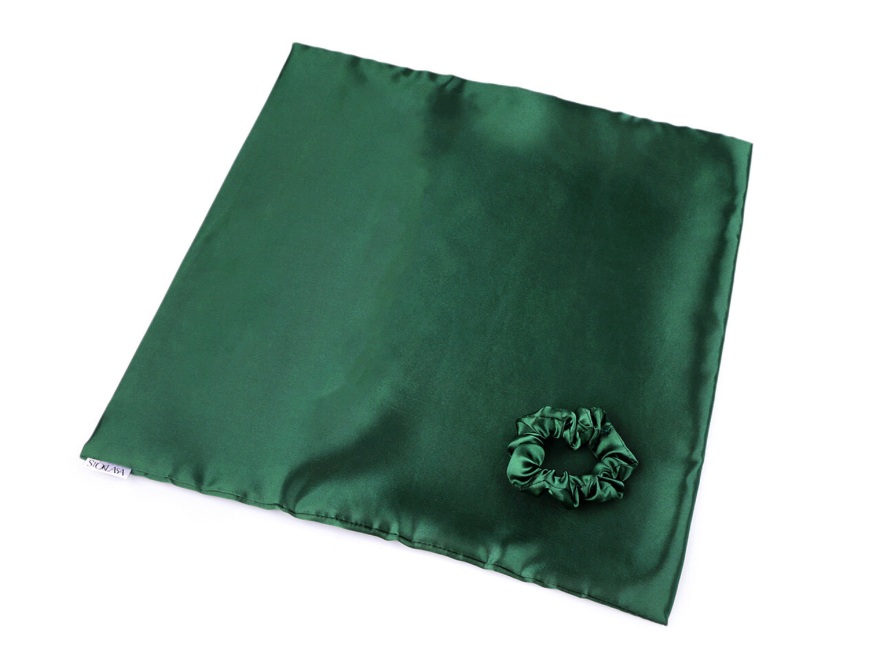 Sada na spaní, saténový povlak na polštář a gumička - 1 ks - 15 zelená tm.