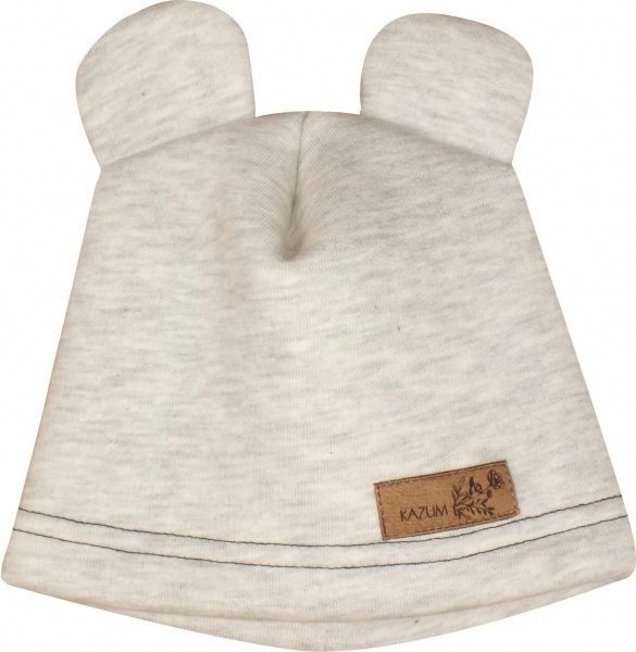 Teplá dětská čepice Kazum, bavlněná s oušky, šedá; 56/62 (0-3m)