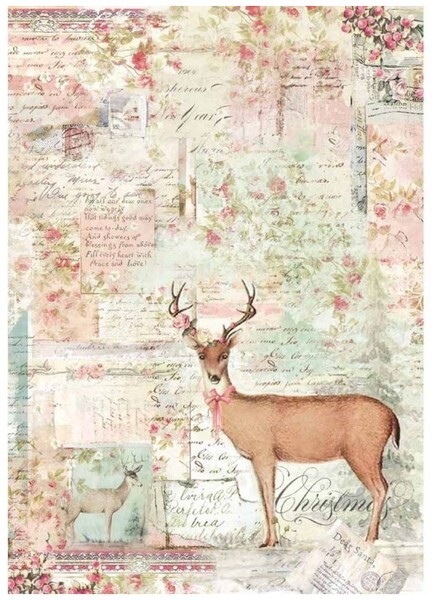 Papier ryżowy A4 Różowe bn - renifer, Stamperia