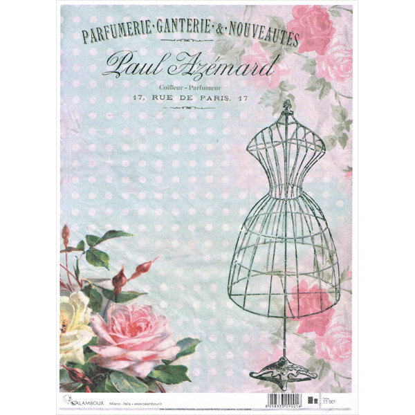 Papier ryżowy do decoupage 309 x 233 (342 x 247) mm TT001, Calambour