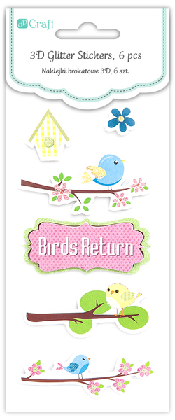 Naklejki brokatowe 3D - powrót ptaszków, 6 szt., Dp Craft